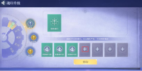 2)点击右上角的“契印”,可以消耗3个同阶魂印,随机生成一个对应阶的魂印