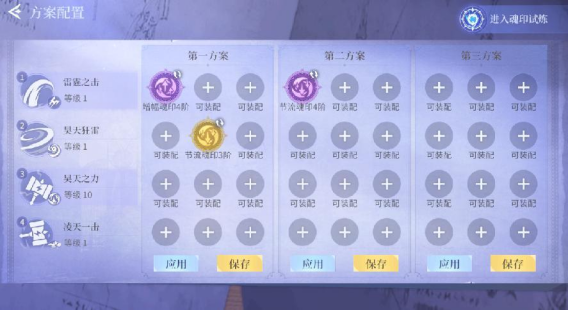 4)可点击右侧“魂印试练”给魂技搭配任意品质、任意等级的魂印